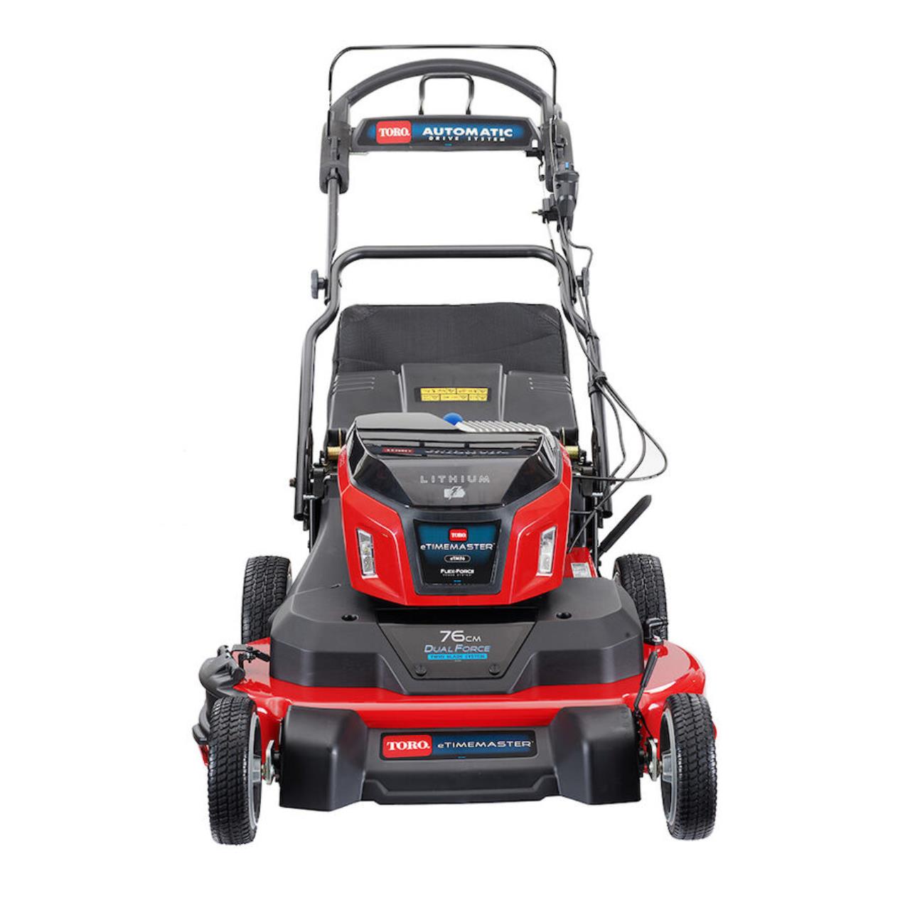 Der Toro 60V eTimeMaster™ eTM76 Rasenmäher mit AutoMatic Antriebssystem, 2 x 10 Ah Akkus und Schnellladegerät. Verlassen Sie sich auf unser 76 cm breites Ganzstahlmähwerk und den Aluminiumgussrahmen für jahrelangen, dauerhaften Einsatz. Die Laufzeit beträgt über 60 Minuten mit den mitgelieferten Akkus oder bis zu 100 Minuten mit dem aktiven zusätzlichen drei Akkuanschlüssen. Und das AuotMatic Antriebssystem erkennt Ihr Gehtempo und passt die Fahrgeschwindigkeit kontinuierlich an. Und zusammen mit unserer DualForce™ Mähwerktechnologie - dem patentierten, zeitgesteuerten Zweimessersystem von Toro - verkürzen Sie Ihre Mähdauer um 40 %***. Teil des Flex-Force 60V Max* Interchangeable 75+ Tool Power System für Leistung in jeder Saison.