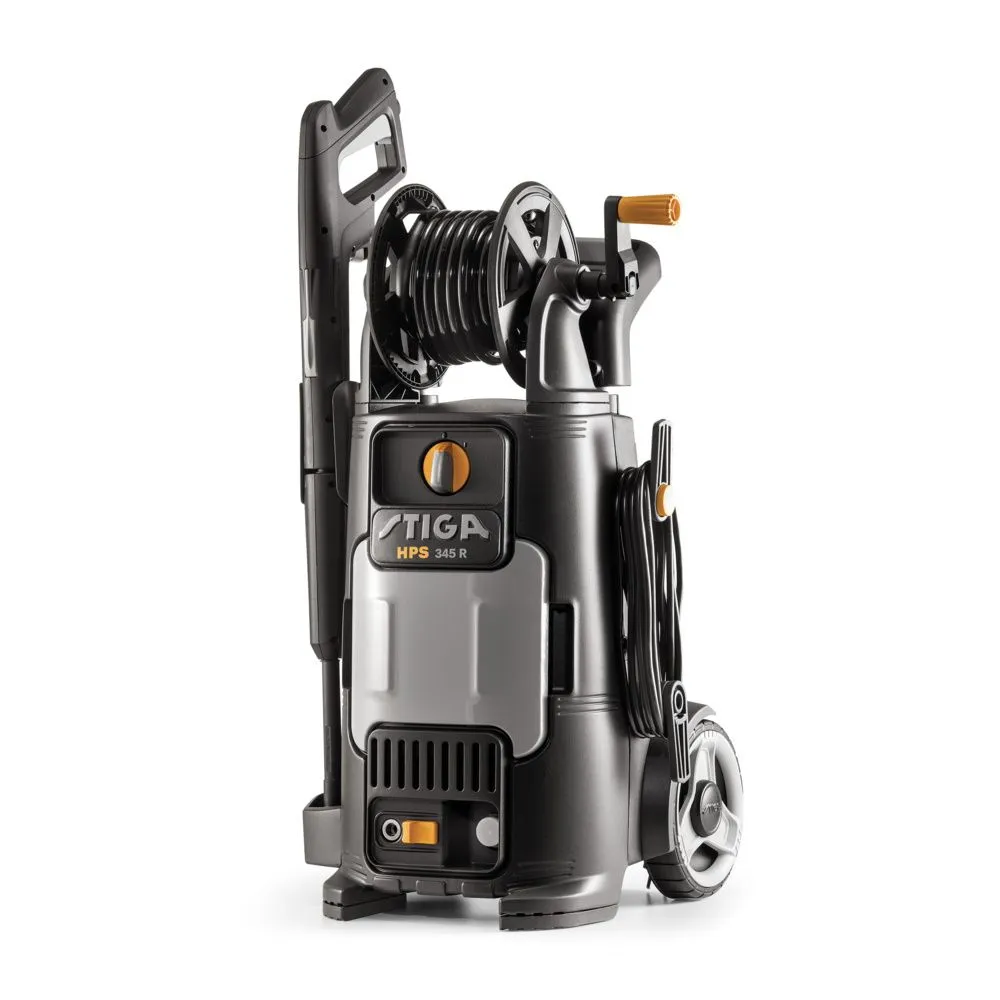 Der Hochdruckreiniger HPS 345 R hat einen Induktions-Motor mit 2100 Watt Leistung und kann einen maximalen Druck von 145 bar aufbringen. Die maximale Fördermenge beträgt 450 Liter, wobei das Pumpsystem aus einem Taumelscheibenmotor besteht und die Pumpe aus Aluminium gefertigt ist. Das Gerät enthält eine Schlauchtrommel und einen armierten Schlauch. Die Reinigungsaufnahme lässt sich mit einem Schaumsprüher bewältigen und der Handgriff ist teleskopierbar und aus Aluminium gefertigt.