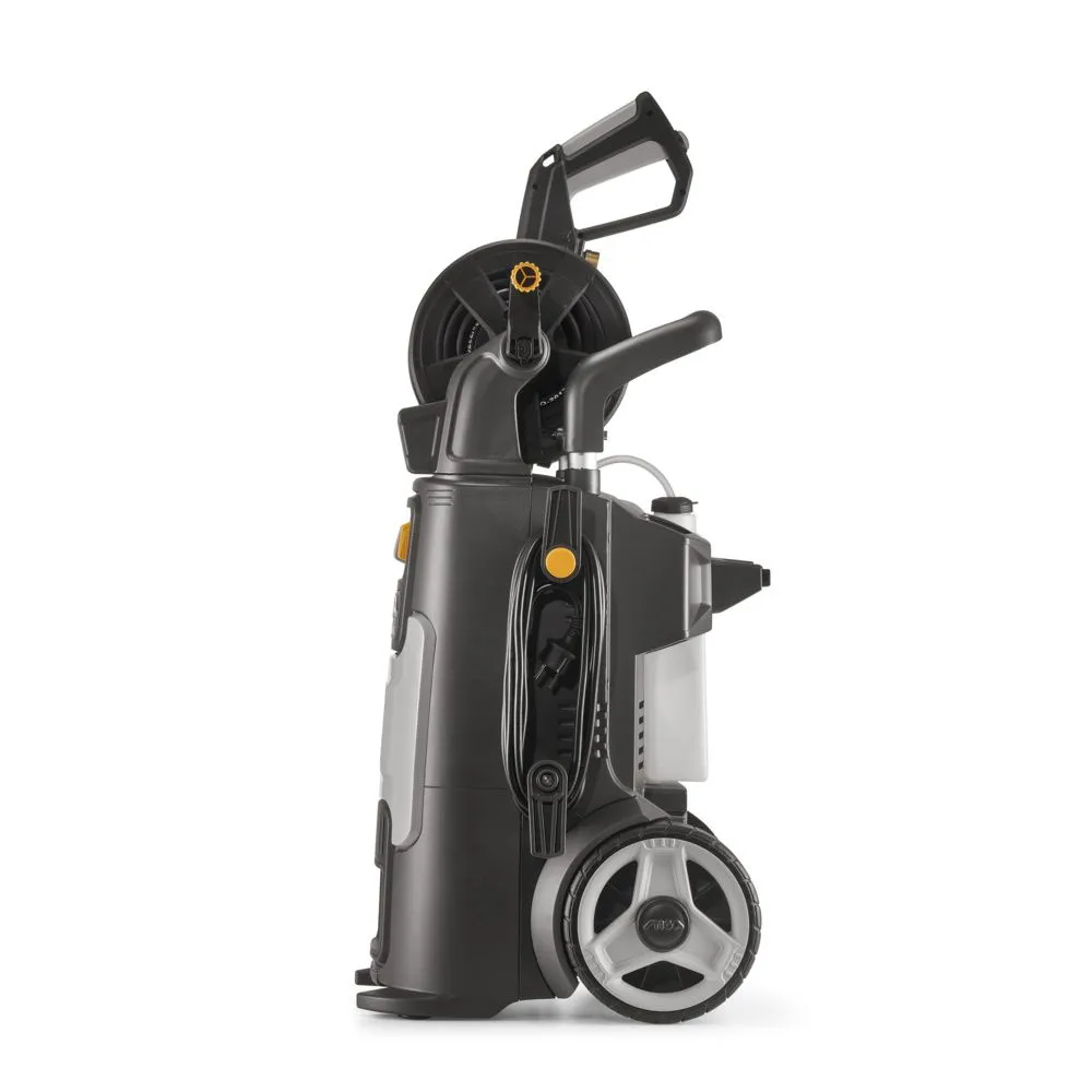 Der Stiga HPS 650 RG ist mit seinen 150 Bar der perfekte Kaltwasser-Hochdruckreiniger, um selbst große Arbeitsbereiche zu reinigen. Der zusätzliche Handgriff sorgt dabei für einen verbesserten Bedienkomfort. Durch seine großen Gummi-Räder und den Teleskopgriff mit Soft-Touch ist der stabile Reiniger leicht zu transportieren und sehr beweglich. Der Stiga HPS 650 RG ist mit einer Schlauchtrommel und einem Zubehörfach ausgestattet und eignet sich ideal zur Reinigung schwer verunreinigter Gartenmaschinen, Werkzeuge, Gärten, Terrassen, Treppen, Fahrräder, Motorräder, Autos, Wege, Zufahrten, Holzelemente, Bungalowfassaden und vielem mehr.